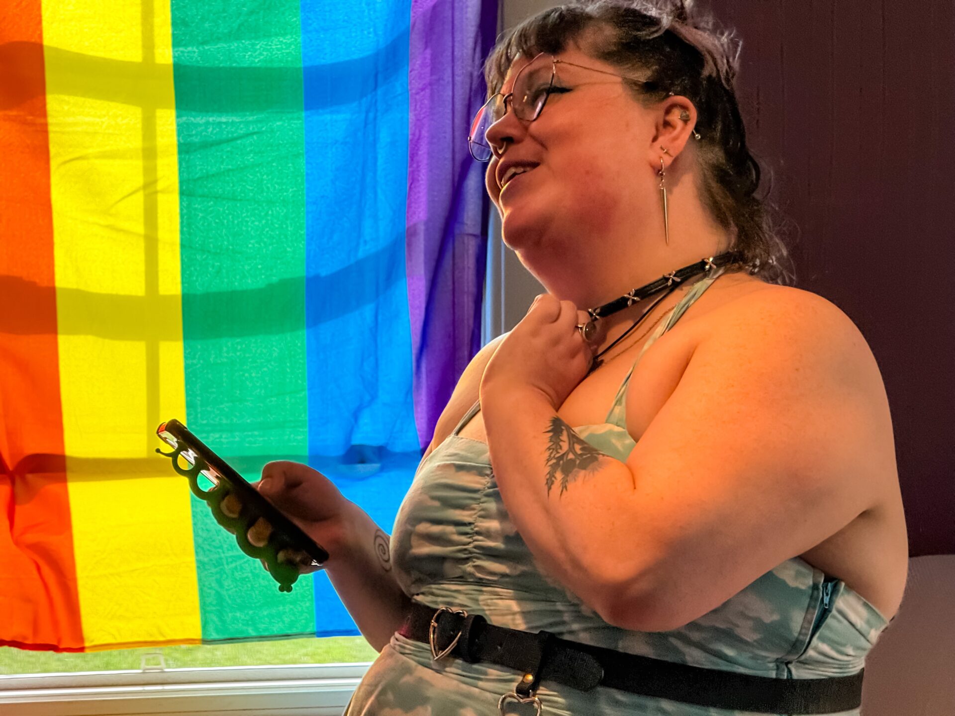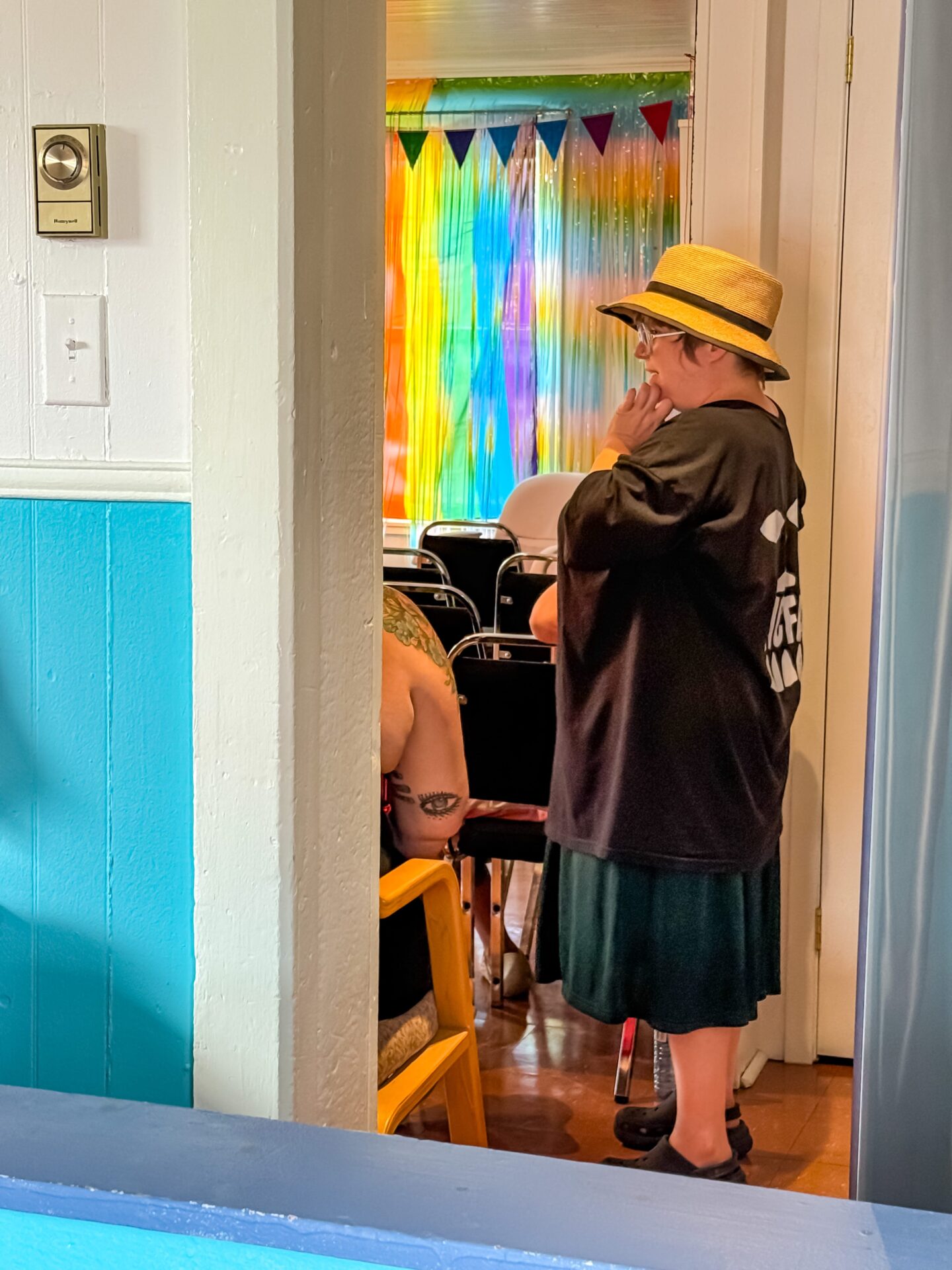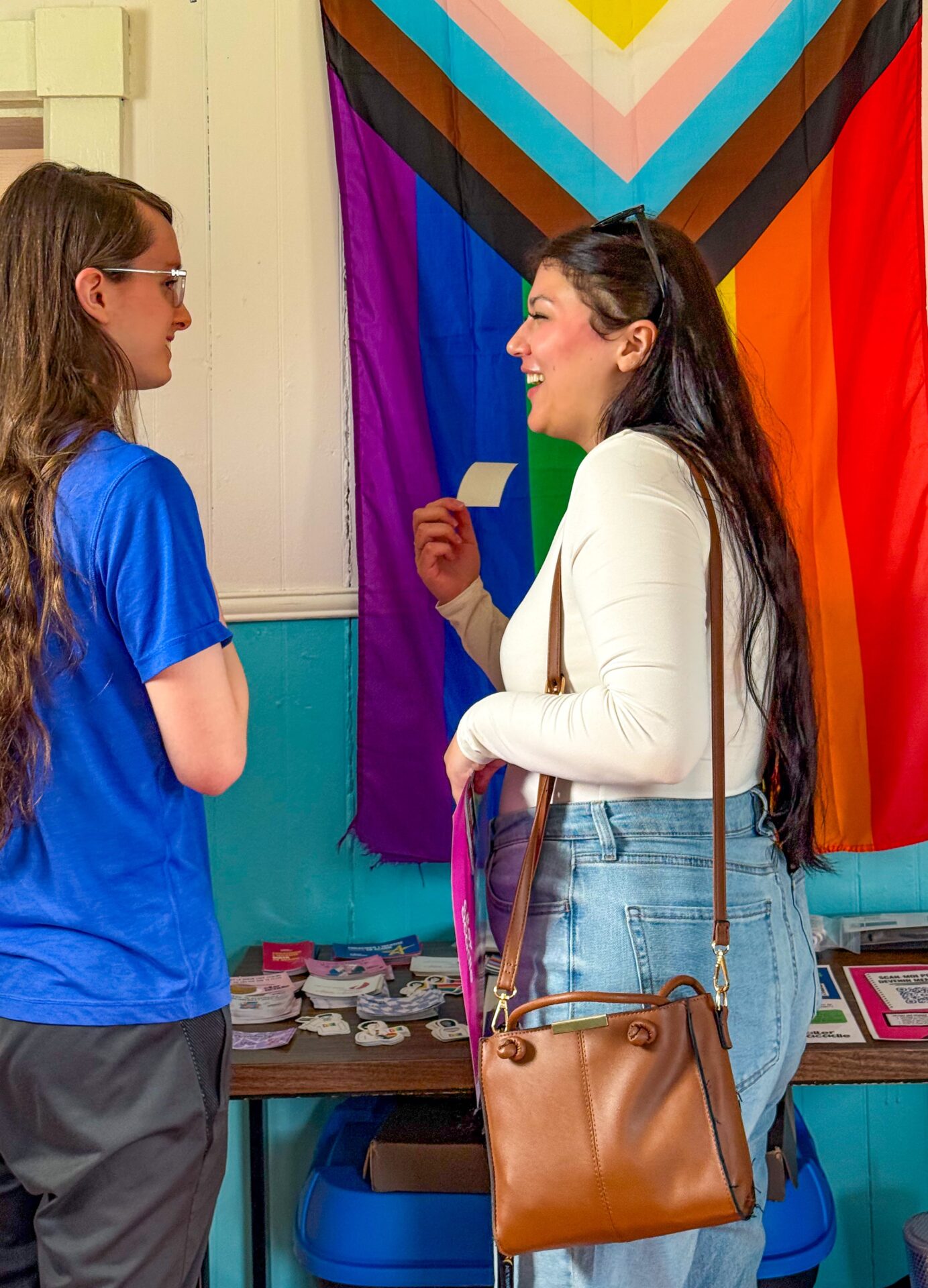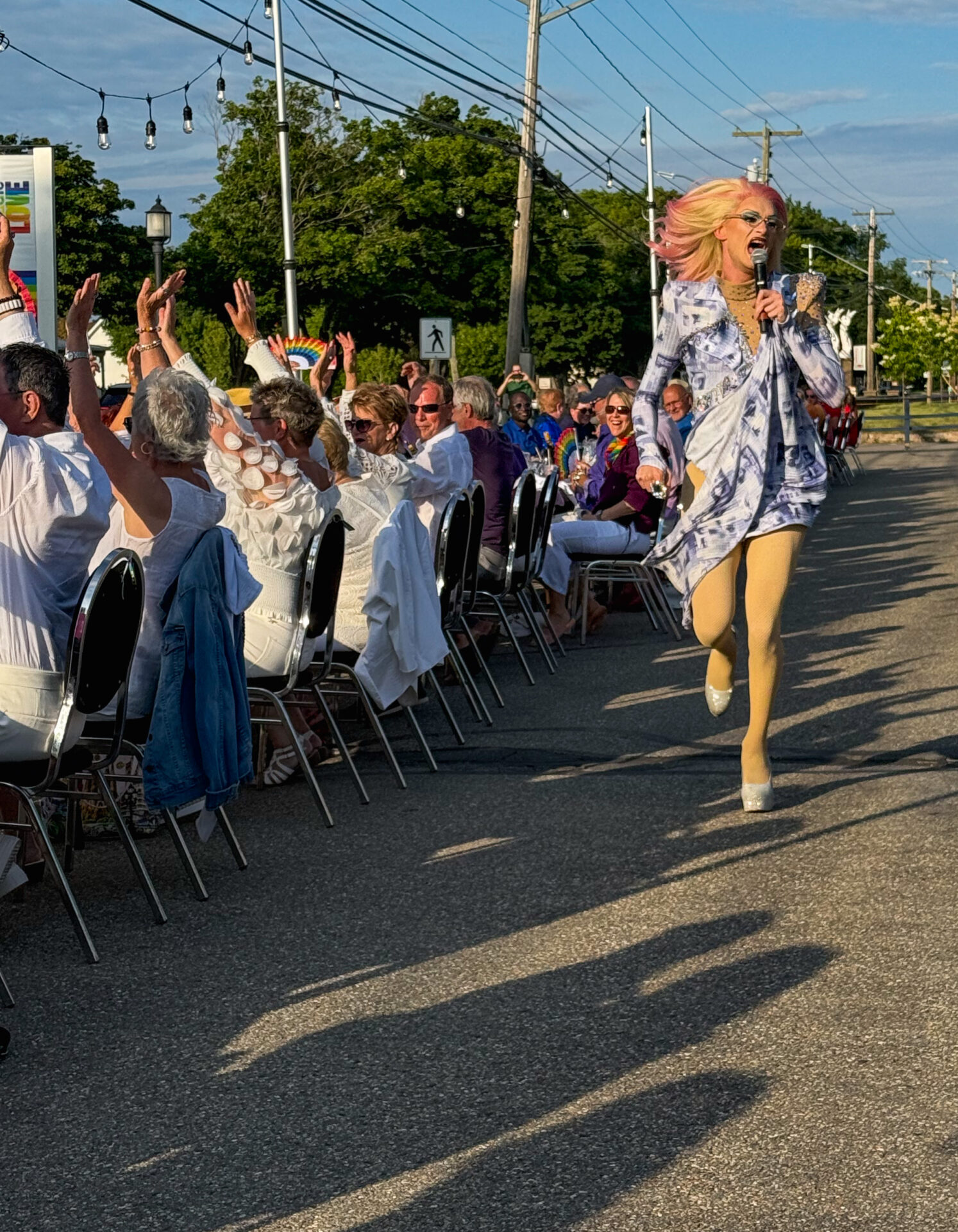 Création spontanée d’un vêtement unique en direct, par l’artiste Janie McLaughlin, inspiré par le drapeau LGBTQ, pour une immersion dans son processus artistique!
